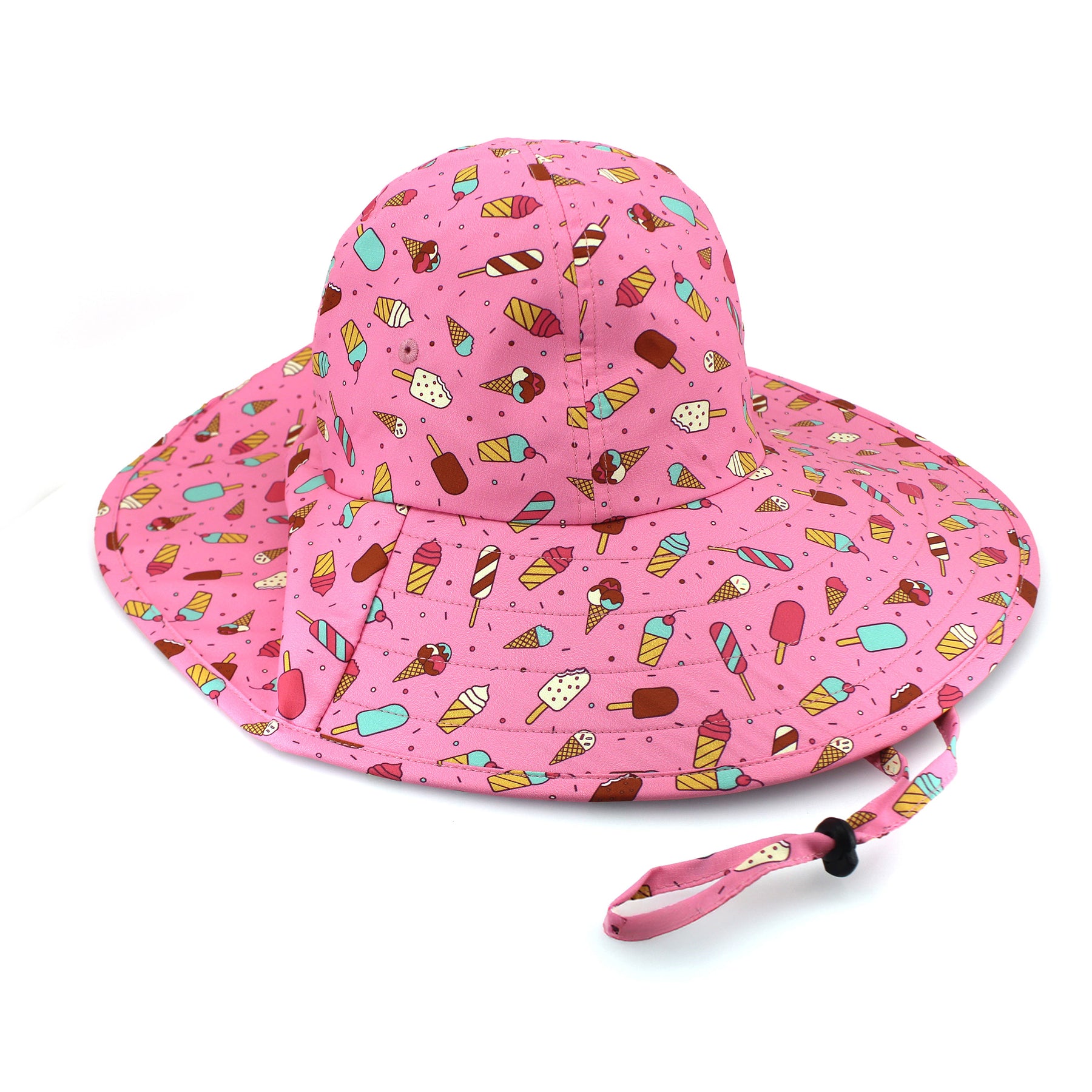 The kids’ Lonnie Bucket Hat in Pink Ice Cream is crafted from tough polyester and comes with a wide brim to deliver top-notch UPF50+ sun protection. With its adjustable chinstrap and breakaway toggle, this hat stays put no matter what adventures your little one gets up to.